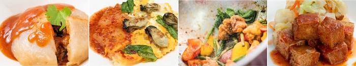 独特の食感と餡のしっかりとした味がクセになる「肉圓」、牡蠣の入ったオムレツで甘辛のタレがあう「虫可 仔煎」、香ばしいスパイスと風味がたまらない「塩酥鶏」、一度食べたらくせになる名物クサ旨グルメ「炸臭豆腐」など。