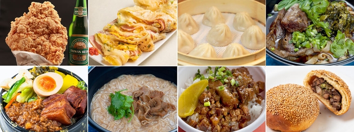 前回の幕張開催では50,000枚以上売れた、名物!スパイス香る特大唐揚げ「大鶏排」、開催の度に人気が増し徐々にブームがきている葱を織り交ぜた生地を油で焼くパイ「葱油餅」、毎回大人気の台湾天心代表格、肉汁がジュワーっとあふれ出す「小籠包」、麺の上にじっくりと煮込んだとろっとろの牛肉がのる「牛肉麺」、台湾鉄道の駅弁に代表される「排骨飯」、とろとろでコクのあるスープで食べる麺料理「台湾麺線」、台湾の家庭料理の定番、大きな豚角煮と豚ひき肉の「魯肉飯」、胡椒が効いた肉ダネを生地で包み焼き上げたストリートフード「胡椒餅」などが楽しめます。