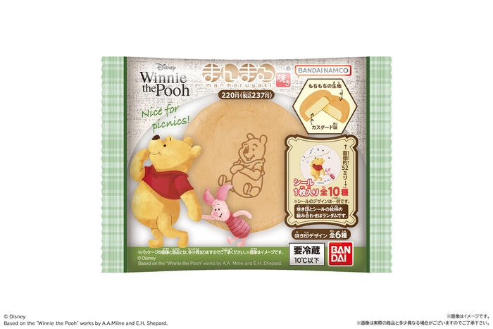 昨年大好評を頂いた「くまのプーさん」のまんまる焼きがリニューアルして再登場します。カスタード味のクリームが入ったまんまるもちもち生地の今川焼きです。表面には、オリジナルデザイン焼き印が押されています。昨年販売した3種の焼き印に、新規デザイン3種を加えた全6種のさまざまな愛らしいポーズのくまのプーさんを楽しめます。また、くまのプーさんのゆったりとした世界観を反映した、可愛く、おしゃれなテイストのシールもランダムで1枚付属。リニューアルされたデザイン全10種の中から1種が付属します。