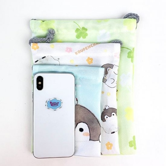 豊富なサイズがそろう巾着3点セットなら、コウペンちゃんがどんなモヤモヤもお預かりして幸せ気分に変えてくれますよ♬