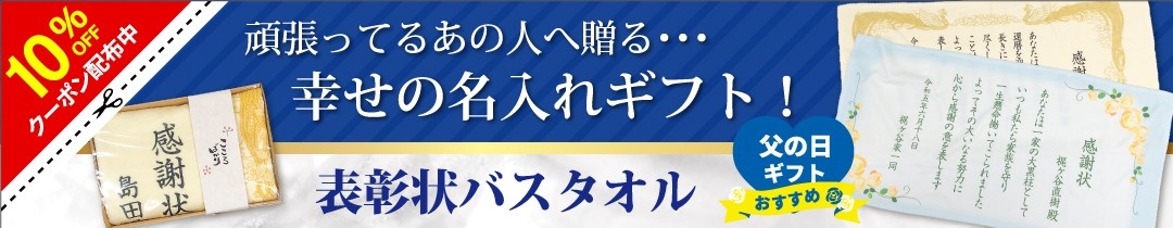「名入れ表彰状バスタオル」は、お名前と日付を入れて贈れる、心に残る特別なギフトアイテムです。