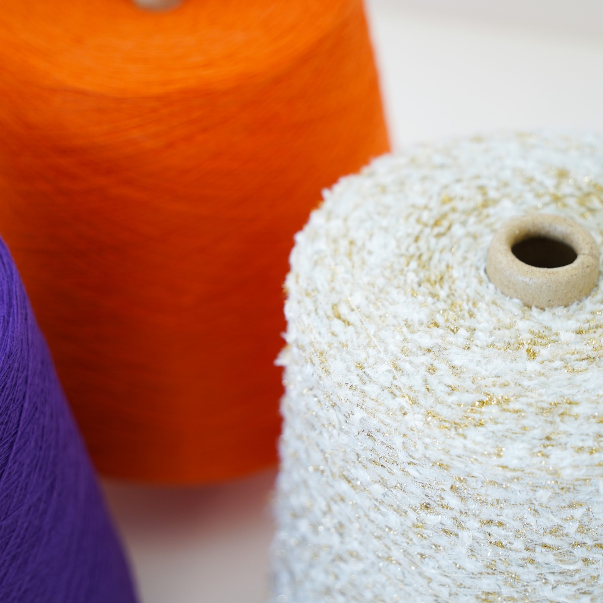 体験では、全36色の綿糸から2本を選び、きらきらスラリットヤーン1本とシルク1本を合わせ、自分だけのオリジナルソックスを編み上げます。