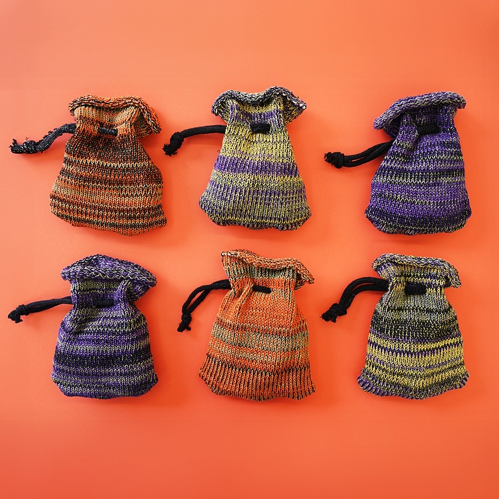きらきらスラリットヤーンを選んでくださった方には、チャリックスの編み地やつま先縫製時にできる輪っか状のハギレ「ソックループ」を活用した、S.Laboオリジナルミニ巾着をプレゼント(数量限定)。