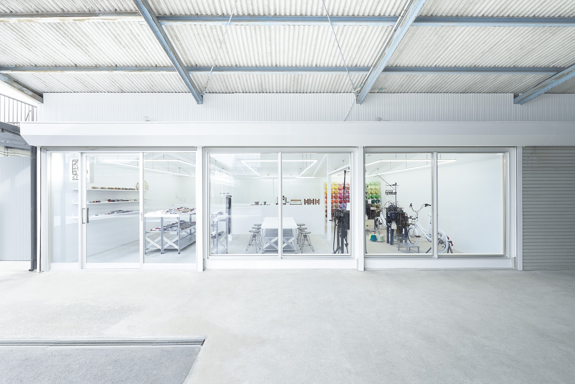 「であう」は実際に自社のブランドくつ下を手にとって体験できるショップエリア。「まなぶ」では製造過程で生まれる残糸や端材を材料にサステナブルをテーマにしたワークショップを実施。「あそぶ」は自転車と編み機を融合したオリジナルマシーン「チャリックス」で自分だけのオリジナルくつ下がつくれます。