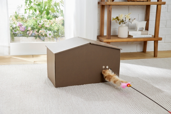 【特徴③】じゃらしで遊べる小窓付き。ひょっこりのぞくお顔がキュート。