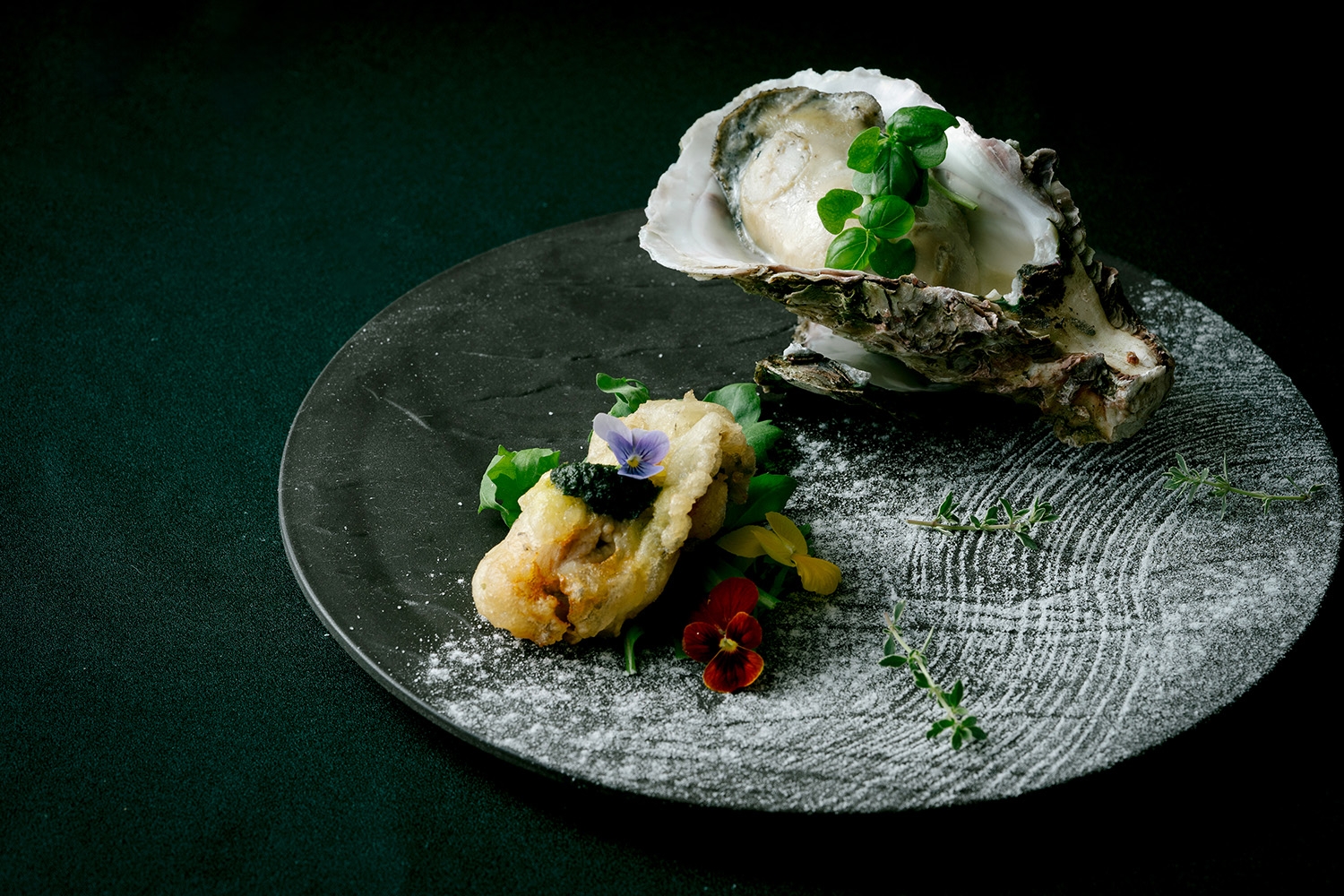 【海の京都 伊根産の岩牡蠣など】丹後の上質な食の旅へ。薪火料理の新コースがスタート。京丹後市「HOTEL&湖邸 艸花 -そうか-」