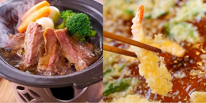 サーロインステーキ陶板焼き/天ぷら~会津山塩を添えて~