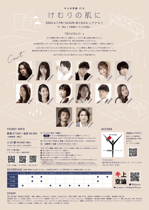 ◆キ上の空論#18『けむりの肌に』アフタートーク開催決定!◆ 上演期間:2023年4月7日(金)~16日(日) @CBGKシブゲキ!!