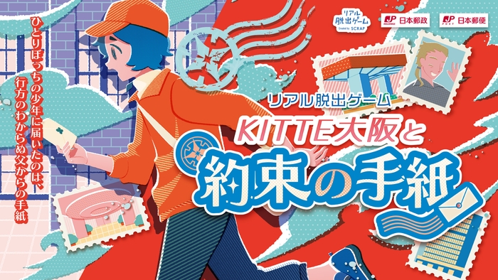 全世界で累計1,490万人以上を動員しているリアル脱出ゲームを企画制作する株式会社SCRAP(本社:東京都渋谷区、代表 加藤 隆生/以下「SCRAP」)、日本郵政株式会社(東京都千代田区、取締役兼代表執行役社長 増田 寬也/以下「日本郵政」)および日本郵便株式会社(東京都千代田区、代表取締役社長兼執行役員社長 千田 哲也/以下「日本郵便」)は、「KITTE大阪」の館内に仕掛けられた謎を解きながらゲームクリアを目指す回遊型の体験型ゲーム・イベント「リアル脱出ゲーム『KITTE大阪と約束の手紙』」(以下「本イベント」)を、2025年5月29日(木)から開催いたします。
