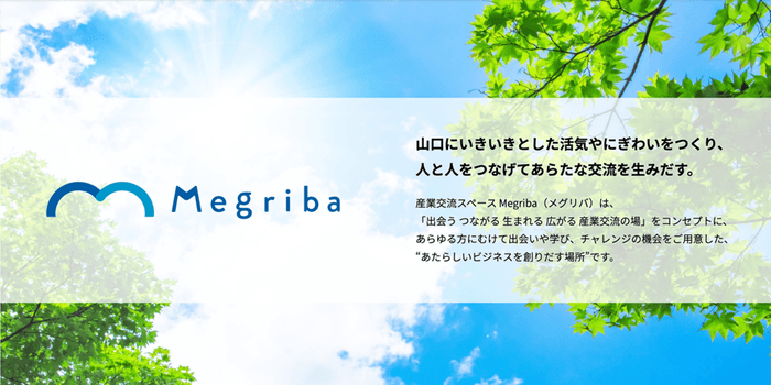 山口市の産業交流スペースMegribaは「出会う つながる 生まれる 広がる 産業交流の場」をコンセプトに、あらゆる方にむけて出会いや学び、チャレンジの機会をご用意した“あたらしいビジネスを創りだす場所”として誕生いたします。