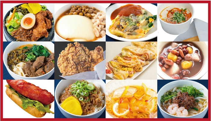 台湾夜市の大定番!外はカリッとサクサク、中はジューシーな、顔が隠れるほどの大きなサイズの台湾唐揚げ「大鶏排」。米粉を使ったモチモチ麺に、じっくりと煮込んだ柔らか牛肉とスパイシーな濃厚牛肉スープが合わさった有名麺料理「牛肉麺」。台湾駅弁人気No.1!台湾スパイスと醤油ベースの甘辛いたれに漬けた豚肉の唐揚げがご飯と相性抜群の「排骨弁当」。のほか、「葱油餅」「小籠包」「蚵仔煎」「大腸包小腸」「割包」などをメインにラインナップ!