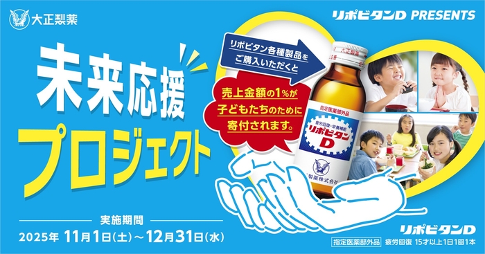 大正製薬株式会社[本社:東京都豊島区 社長:上原 茂](以下、当社)は、株式会社ツルハホールディングスご協力の下、北海道・東北・中国・静岡・四国エリアの同社・ツルハドラッグ、ウォンツ、ドラッグストアウェルネス、杏林堂薬局、レデイ薬局各店舗における、リポビタン各種製品の売り上げの一部を寄付する「子どもたちのみらいのために 未来応援プロジェクト2025」を11月1日(土)より実施いたします。