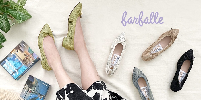 「ここち良さを、あたらしい視点から」をスローガンに掲げるクロシェは、サステナ素材を使用した夏に嬉しいフラットシューズを【farfalle】から発売いたします。