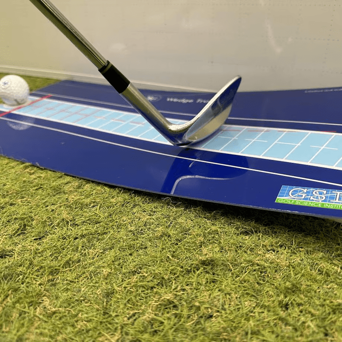 ウェッジトラックは、1日で突然ゴルフがうまくなると大好評のゴルフ科学研究所・ゴルフ導夢 (横浜市) 主宰 佐久間馨氏の長年の研究によって生まれた、「ダフリ」「トップ」「シャンク」がなくなる練習器具です。三次元構造のウェッジトラックにクラブヘッドを置き、ガイドに沿って“なぞる”ように打つだけで理想の“ロー&ロー軌道”が自然に身につくという優れモノです。