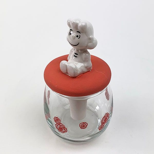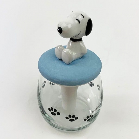 スヌーピーのアロマディフューザーです。ポットの部分はガラス製、フタとフィギュアは陶器でできています。ポットにお好きなアロマを適量いれていただくと陶器のフタから揮発し、香りが広がります。