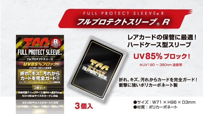 UV190nm~360nmすべての波長帯で紫外線を70%ブロックし、プレイ中でもカードを紫外線から守ります。