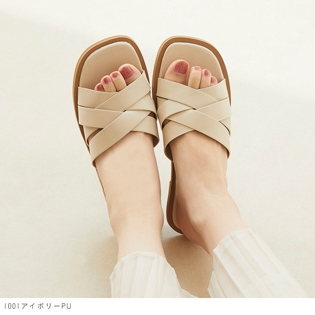 リラクシーで温かみを感じるナチュラルなデザインのフラットサンダル。