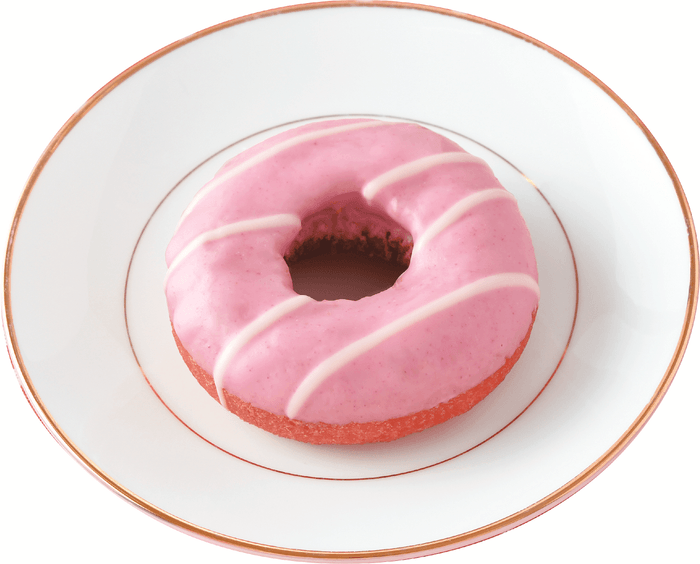 【内容】あまおういちご味のドーナツ生地にいちご風味のチョコをコーティングし、ホワイトチョコでトッピングをしました。
