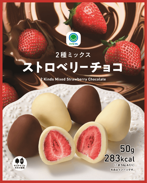 【内容】フリーズドライのいちごをミルクチョコとホワイトチョコでコーティングしました。2種類のチョコレートといちごの組み合わせが楽しめる、よくばりなセットです。