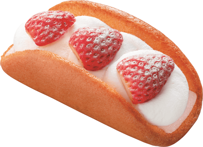 【内容】ふわふわでくちどけの良い生地に、北海道産生クリームをブレンドしたクリームといちごカスタードクリームを包み、フレッシュいちごをトッピングしました。手軽に本格的なショートケーキのような味わいをお楽しみいただけます。