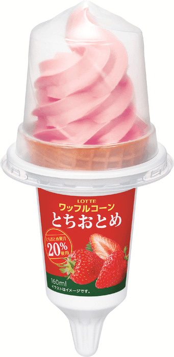 【内容】国産のとちおとめ果汁を使用した優しい甘さのいちごアイスと、小麦粉の一部に全粒粉を使用した香ばしいシュガーコーンを楽しめる、ワッフルコーンアイスです。