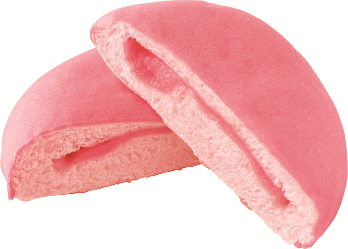 【内容】ふわもち食感のパン生地にいちご風味のやわらかビス生地を重ねました。つ