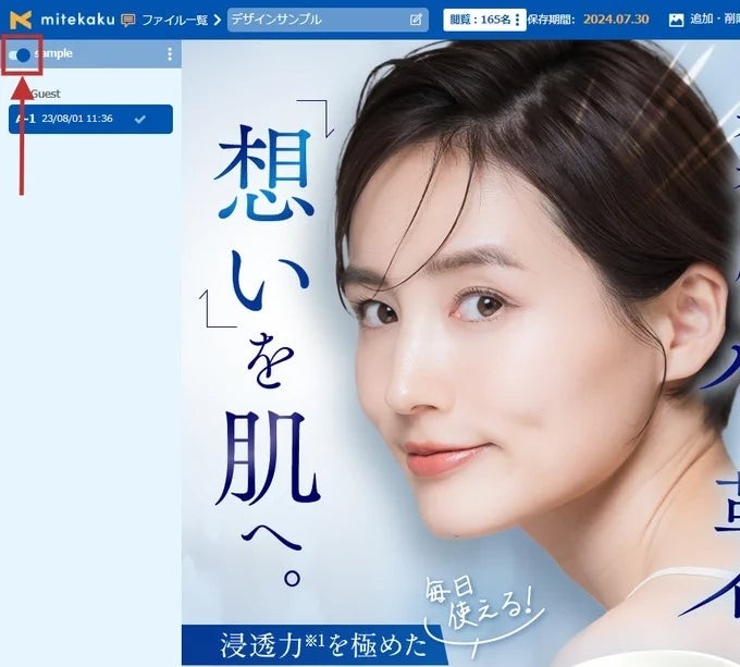 これにより、画面上の修正指示を瞬時に非表示にし、元のデザインを確認する事が可能になり、作業効率を向上させます。