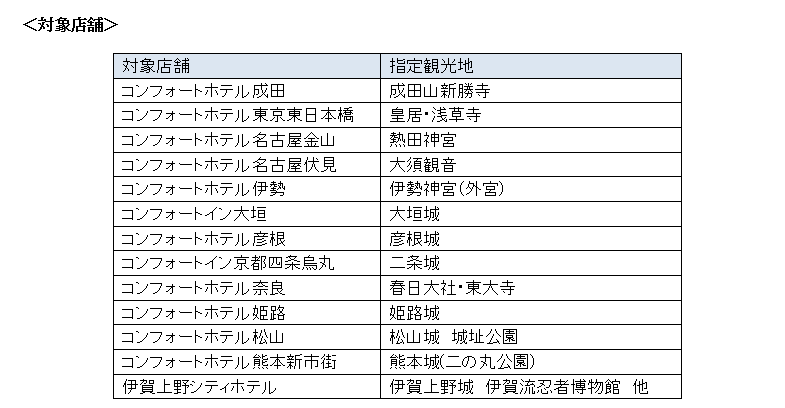 対象店舗:全国のホテル13店舗(次頁詳細)