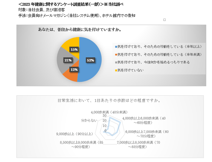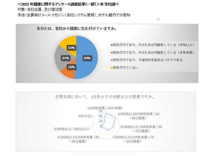 今後も健康づくりに貢献するサービスを取り入れ、お客様の快適で健康的な滞在をサポートし、一層のサービス向上に努めてまいります。