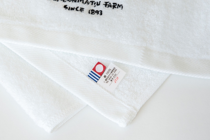 ”セボン”がワンポイントで刺繍されたフェイスタオル。ハンドタオルと同じ『今治タオル』で、ホワイトとブラウンの2色で展開します。