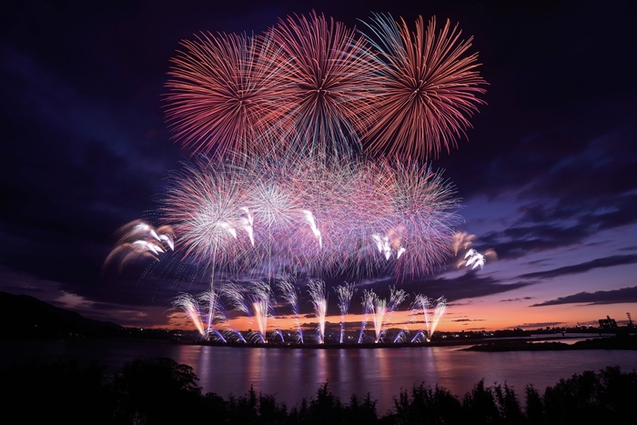 花火大会のオープニングやフィナーレを飾ることが多く、色鮮やかな花火が即座にいくつも花開く様子は、目を奪われること間違いなし!