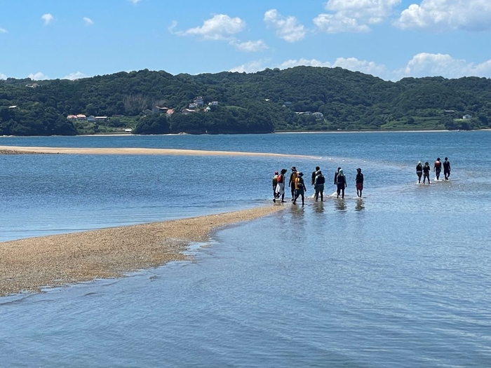 それぞれが風を読み、コース戦略を立てながら集団で帆走する姿は、さながら自然と一体化したようでした。黒島では、干潮の時に現れる海の道「ヴィーナス・ロード」を「中ノ小島」まで歩きました。