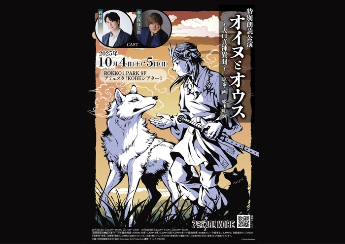 特別朗読公演「オイヌとオウス~大口真神異聞~」が2025年10月4日 (土) 〜 2025年10月5日 (日)にROKKO i PARK 9F アミュスタ!KOBEシアター1(兵庫県 神戸市東灘区 向洋町中 2丁目9番地1)にて上演されます。