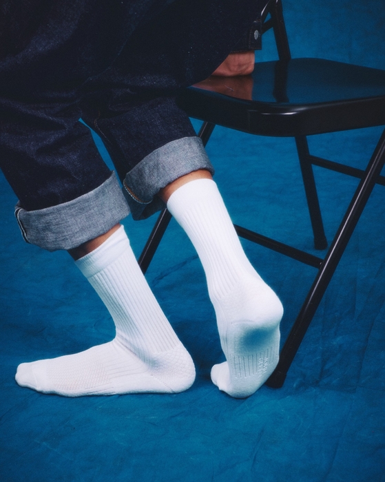 JOHN GLENNのプロダクトは、ブラックとホワイトの2色のみ。「制限こそが創造の源である」との信念のもと、色に頼らず、ディテールと機能性、そして履いたときのシルエットの美しさを徹底的に追求しています。ラインナップは全6モデル。すべてのアイテムに滑り止め機能(ノンスリップ)を搭載し、フィット感・通気性・吸湿性といった履き心地にこだわった、“日常使いの最適解”となるソックスが揃います。
