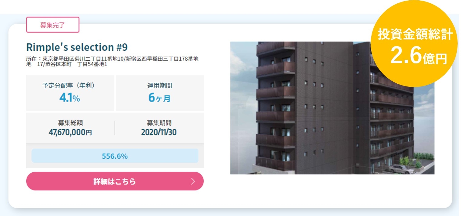 Rimple’s Selection#9募集総額556.6%の2.6億円の応募