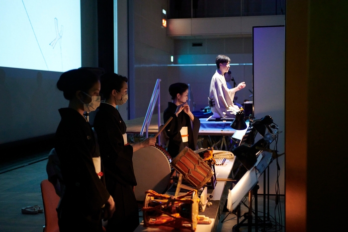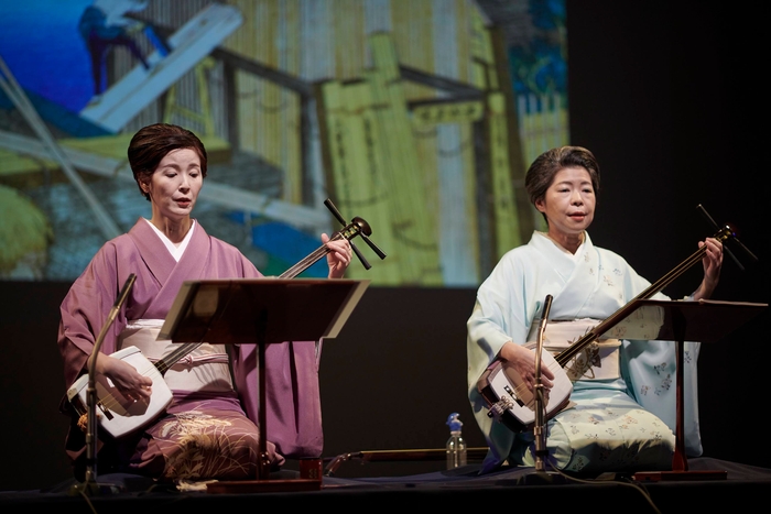 2021年から毎年上演を続け、4回目となる今年は、ちょっと「より道」して、スクリーンに映し出されるのは、北斎だけでなく、広重、明治の浮世絵、古写真が伝える隅田川の橋や川沿いの風景。