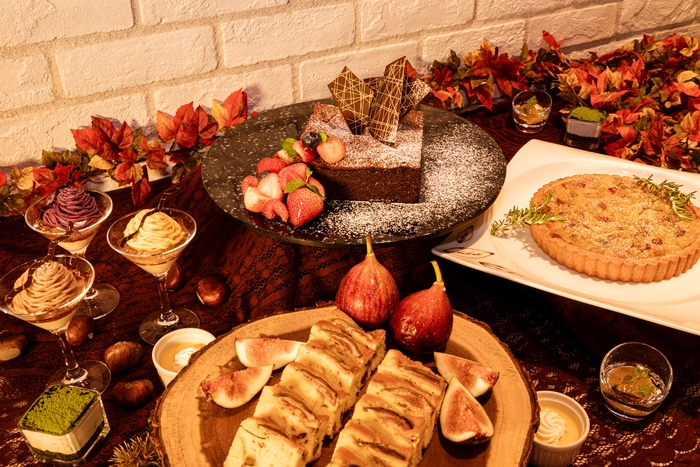 スイーツは3種類のモンブランやかぼちゃのプリン、柿のコンポートなど、秋ならではの味覚が勢揃い!お子さまプレートのご用意もございます。