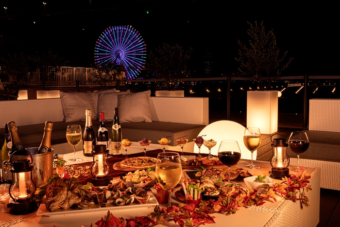 秋の夜長に気持ちのいいオープンテラスで、大阪ベイの夜景を楽しみながらロマンチックなひとときをお過ごしください。