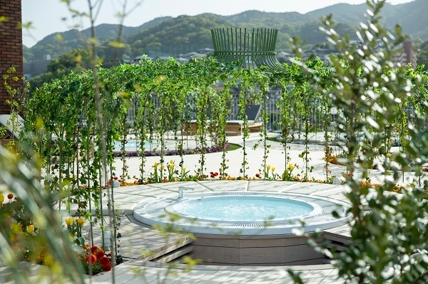 季節の花々とグリーンに囲まれて、ゆったりと心と体を癒す穏やかな空間。夜は煌びやかな光に包まれ、日中とは異なるラグジュアリーな雰囲気に。風がそよぐ中、澄んだ空気を感じながらリラックスしたひとときをお過ごしいただけます。