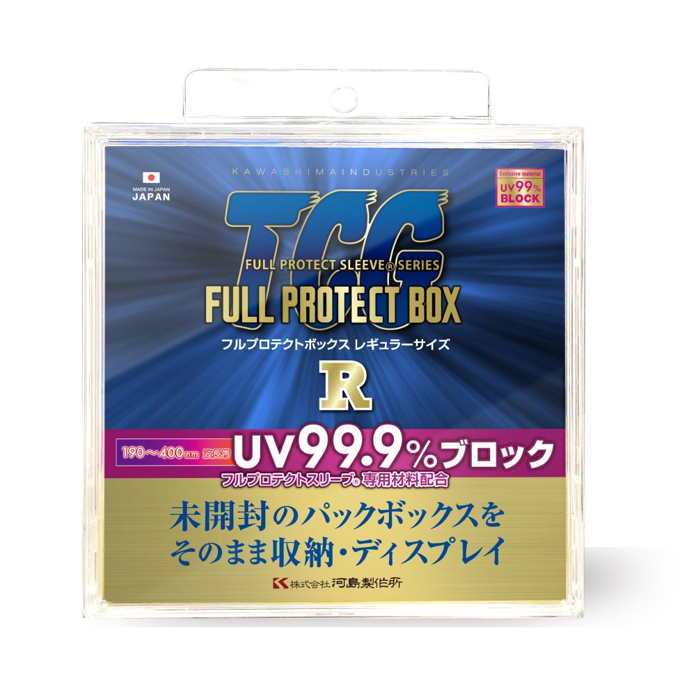 河島製作所のトレカサプライ商品「FULL PROTECT SLEEVE®」シリーズから、トレーディングカード未開封ボックス用コレクション保護ケースが9/27に発売開始。商品名は「フルプロテクトボックス」、フルプロテクトスリーブ史上初!紫外線最大波長帯400nmを「99.9%」ブロックします。