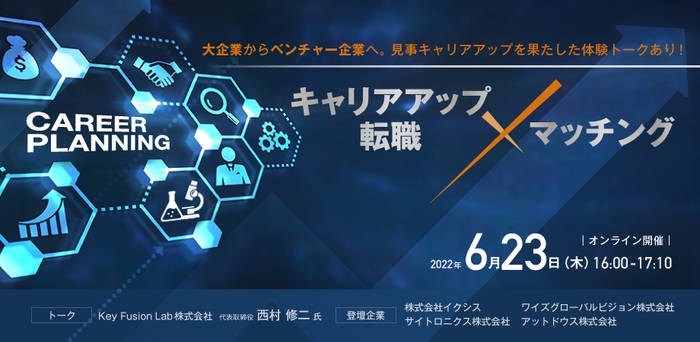 注目のベンチャー企業で新しいキャリアに挑戦したい人を応援。 人材マッチングイベント「キャリアアップ・転職×マッチング by KBIC」を 6月23日(木)に開催。