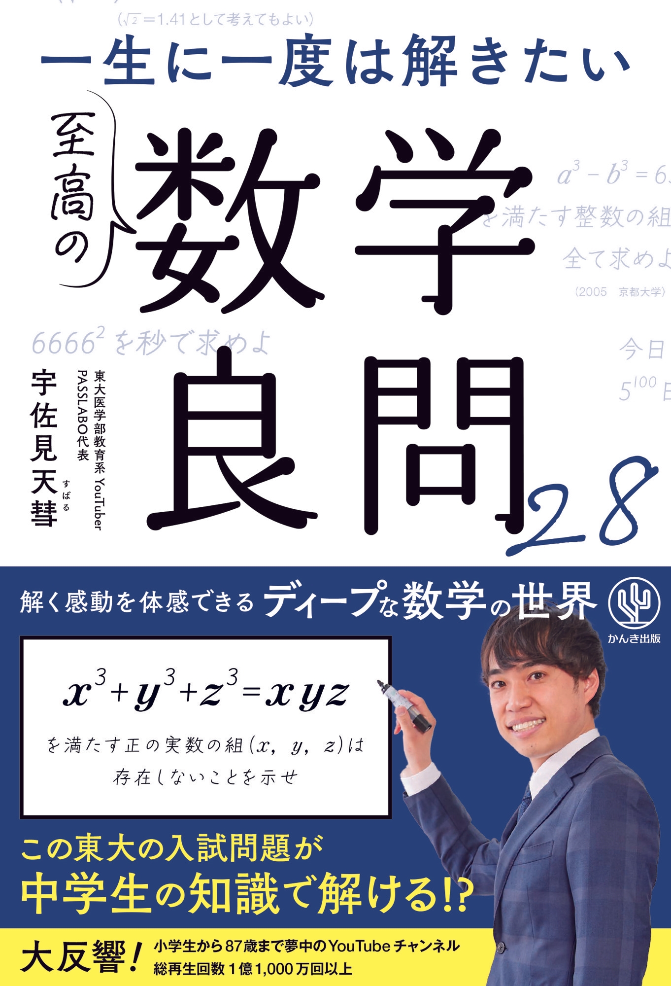 YouTubeチャンネル「PASSLABO」「MathLABO」でおなじみ、宇佐見天彗氏による「挑戦したくなる数学問題」本がついに登場です。