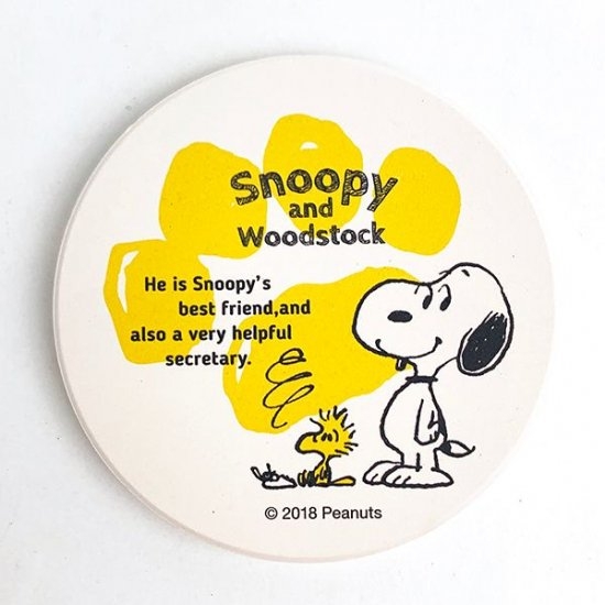 まずはスヌーピーとウッドストックのデザインから。グラスから落ちる水滴をグングン吸収します。もし吸収性が悪くなっても時間がたって乾燥すれば、また元通り水滴を吸収するから繰り返し使える♪元気をくれるイエローカラーです。