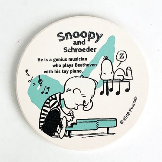 スヌーピー&シュローダー!スヌーピーがなんと音符の上に乗っています。こちらの背景は音符マーク♪