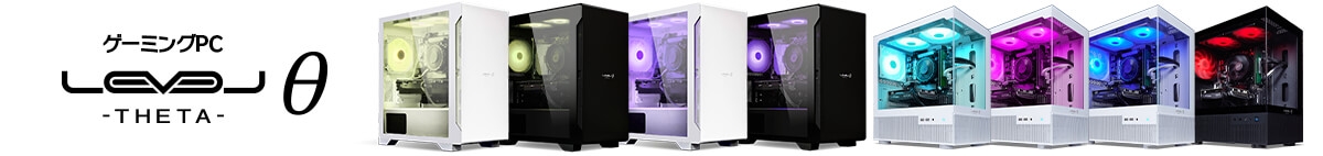 LEVELθ(レベル シータ)は、これからPCでゲームを始めたい初心者からPCを買い替え予定の経験者まで、幅広い人にお送りする高コストパフォーマンスゲーミングPCです。 コスパを追求しながらも搭載パーツを厳選することで、ゲームを快適にプレイ可能なスペックを実現。コスパとスペック、デザインを兼ね備えたLEVELθでPCゲームをお楽しみください。
