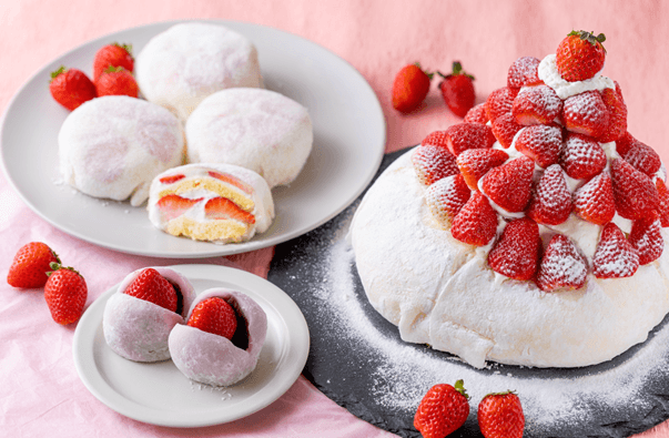 定番のいちごスイーツ「いちごのショートケーキ」をまるごと求肥で包んだ、スイーツ系大福「いちごショートケーキ大福」。和菓子も洋菓子も食べたい気分にぴったりな、幅広いお客さまにおすすめしたいスイーツです。