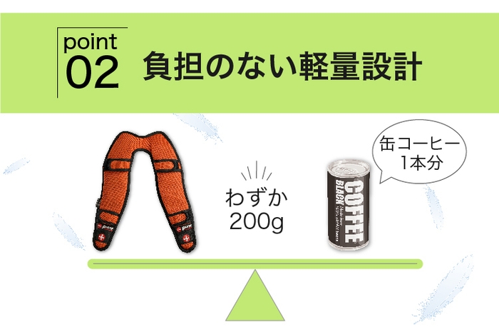 本体の重さは、缶コーヒー1本分の軽さで負担になりません。
