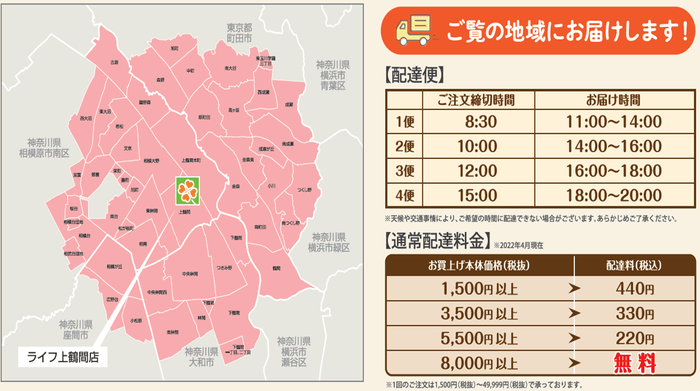 “おいしい” “ワクワク” “ハッピー” をお届けするライフコーポレーションは、11月6日(水)から「上鶴間店」でライフネットスーパーのサービスを開始しました。