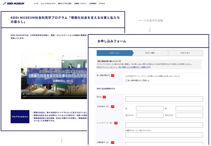 KDDI MUSEUMサイト社会科見学プログラムのページ内に設置したXD.FORM a11yのお申し込みフォーム