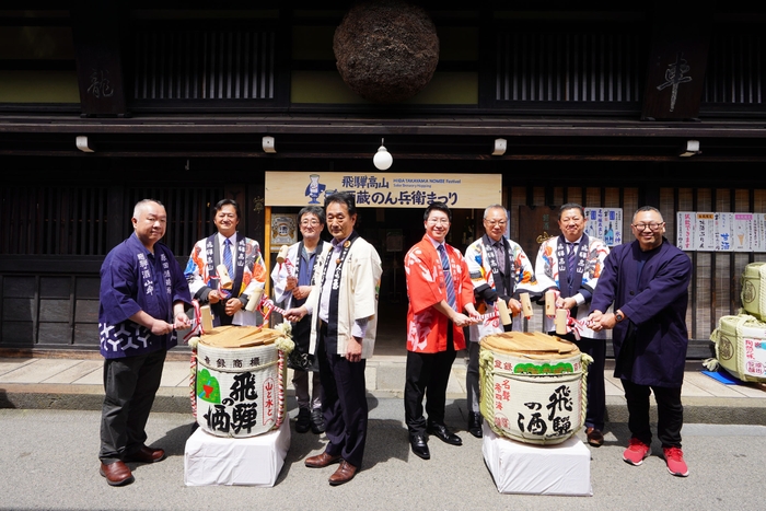 6月5日(木)午前10時から、老田酒造店(上三之町67)店前において、オープニングセレモニーを開催します。セレモニーの最後には、昨年12月5日に「伝統的酒造り」がユネスコ無形文化遺産に登録された記念として、飛騨酒造組合様より地酒の振る舞いが行われます。